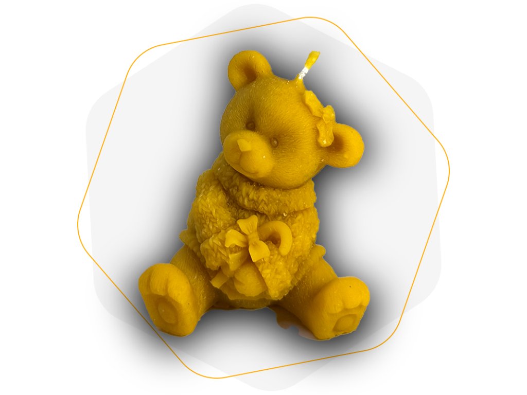 Roztomilá svíčka ve tvaru medvídka z pevného včelího vosku – ideální jako dárek pro děti nebo do dětského pokoje.